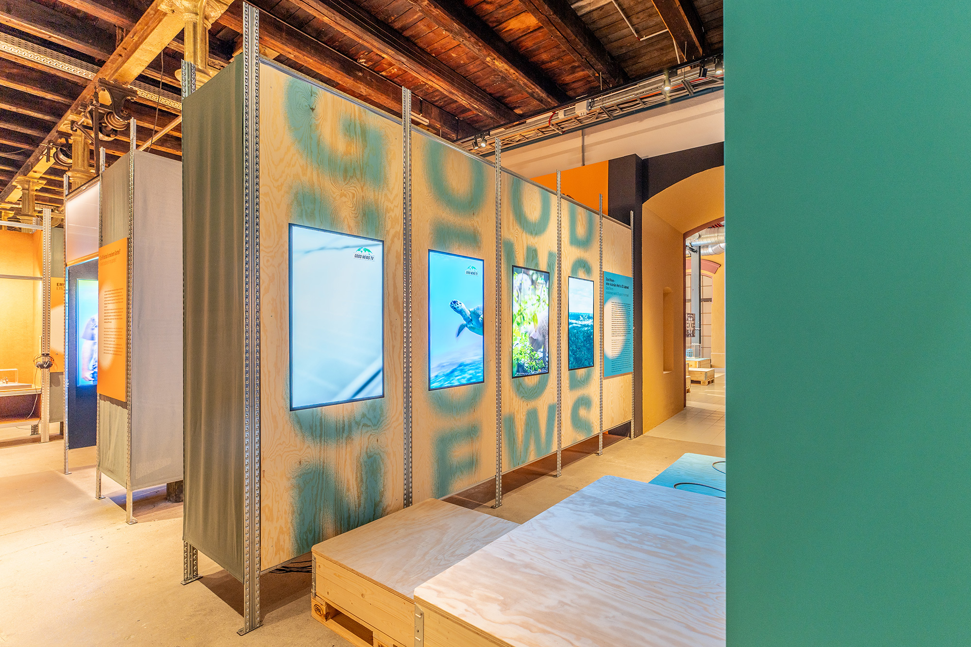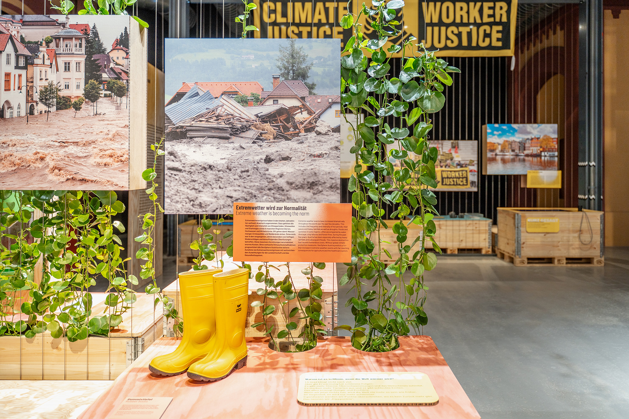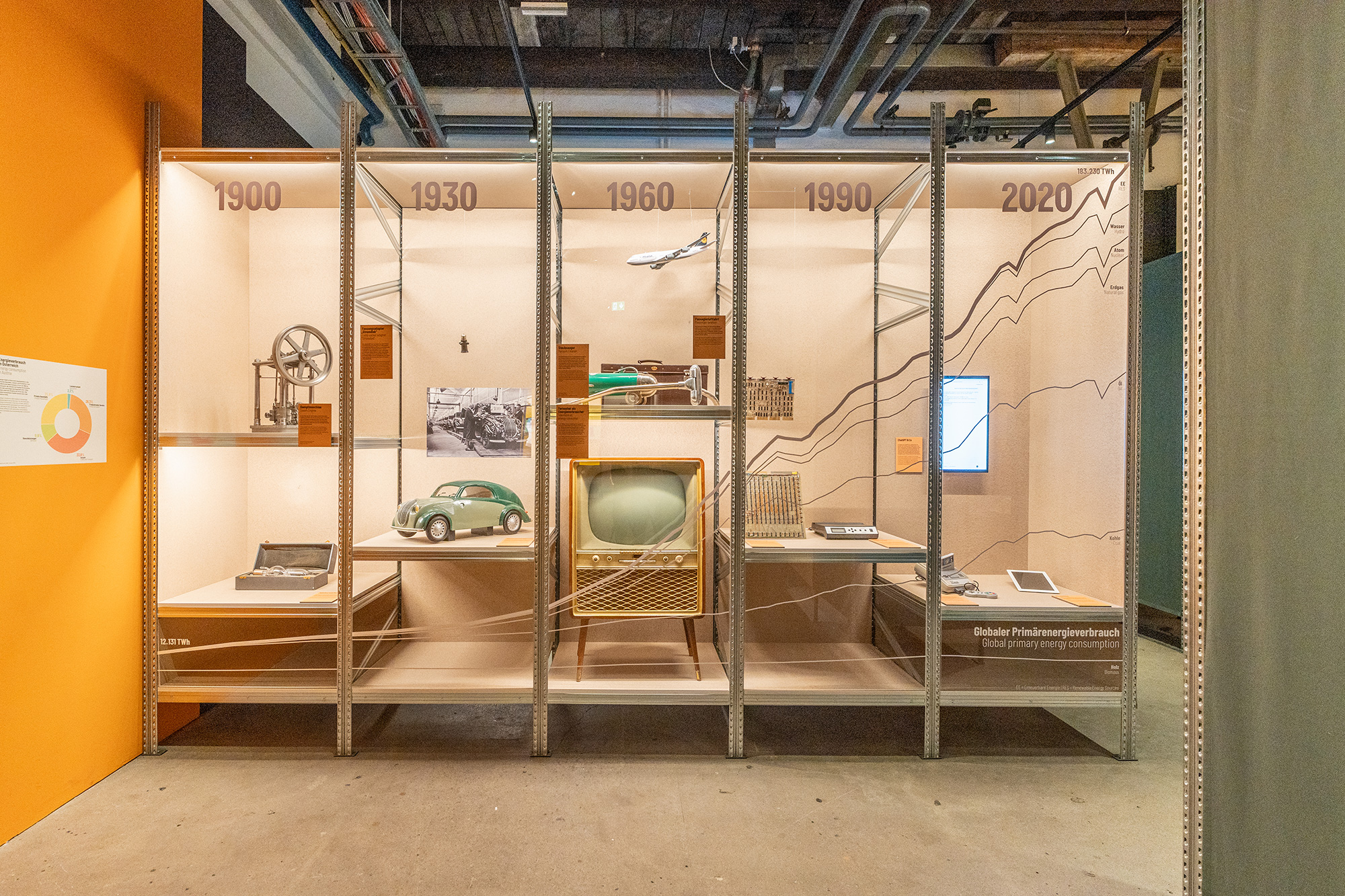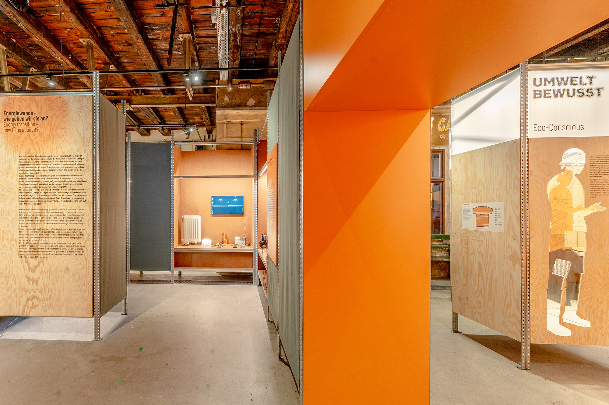 Die Ausstellung wurde vom Technischen Museum Wien erarbeitet und für die Präsentation im Museum Arbeitswelt inhaltlich erweitert und gänzlich neu inszeniert. Mit nachhaltigen Materialien wie Holz, Karton und Pflanzen haben wir die Mittelhalle des Museums in einen freundlichen einladenden Ort verwandelt und die Inhalte klar und verständlich aufbereitet – mit kurzen Texten, Infografiken und Videointerviews. Der Ausstellungsbau basiert auf einem wiederverwendbaren Industrieregalsystem, das mit ökologischen Materialien flexibel beplankt und modular einsetzbar ist.